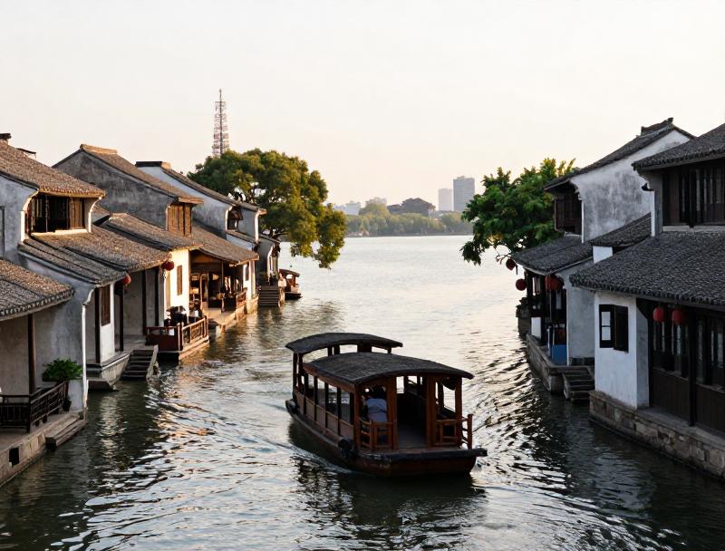 你会发现,这里的主角不是花,是那种夹在水与花之间的自在。是石板路上慢悠悠的步子,是乌篷船划过水面不惊扰的波纹。