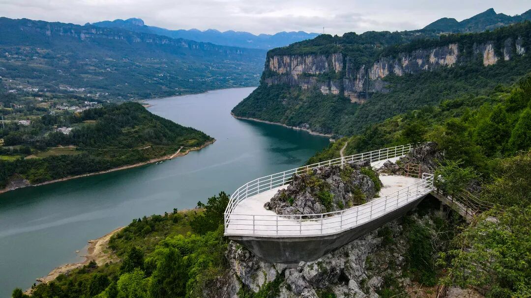 行至观景台凭栏远眺,清江两岸尽收眼底——峰林藏雾,江雾融景,烟波浩渺处,江水如一条玉带蜿蜒穿行于群山之中。偶有阳光从云隙间漏下,洒在江面上,波光粼粼,像撒了一把碎银。