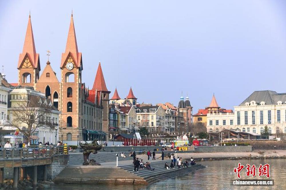 山东烟台:春风拂岸引游人
